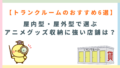 グッズの保管 【トランクルームのおすすめ6選】屋内型・屋外型で選ぶアニメグッズ収納に強い店舗は? アニメグッズ収納に最適なトランクルーム6社をご紹介。屋内型は温度・湿度管理で繊細なグッズでも安心して利用できます。屋外型は24時間アクセス可能で大量のグッズでも対応可能。各トランクルームの特徴を記事内で詳しく解説します。 2025.09.25 2025.10.08 グッズの保管引越しした後の悩み