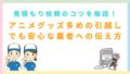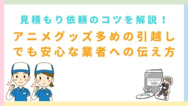 グッズと引越し 見積もり依頼のコツを解説!アニメグッズ多めの引越しでも安心な業者への伝え方 引越しで大切になる見積もり依頼のコツについてご紹介。見積もり時に気を付けたいアニメグッズならではのポイントや、相見積もりをする重要性、さらに見積もり依頼でよくある失敗とその対策方法についてを書いています。 2025.09.03 2025.09.19 グッズと引越し引越し業者について